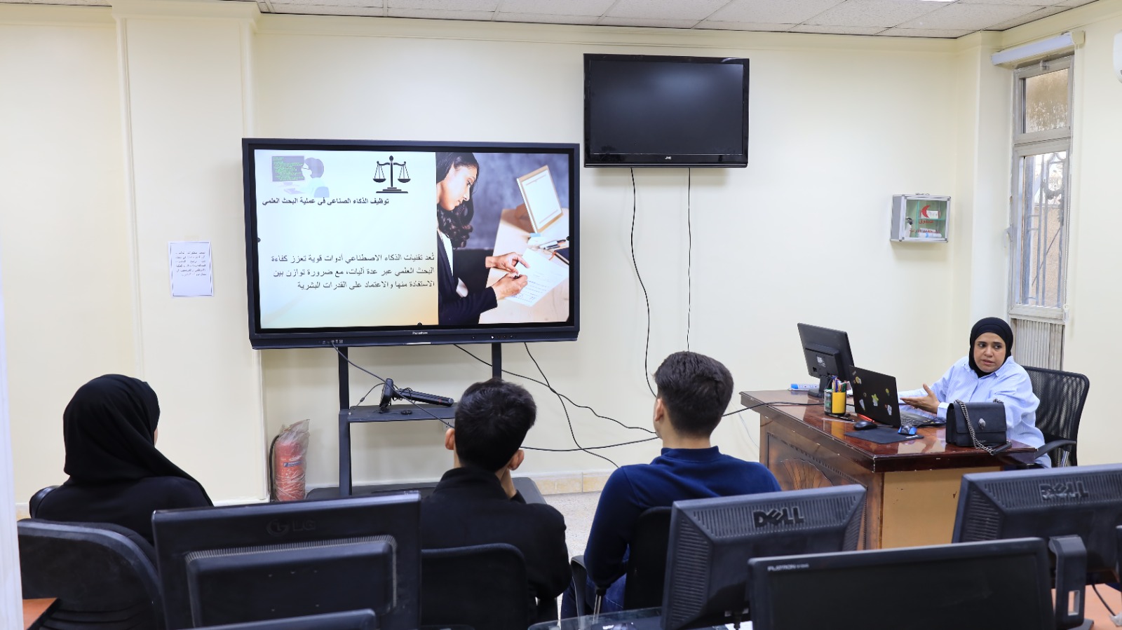 نظّمت وحدة التأهيل والتوظيف في كلية القانون – جامعة بغداد، يوم الخميس الموافق 27 آذار 2025، ورشة عمل علمية بعنوان: “توظيف الذكاء الاصطناعي في عملية البحث العلمي”، قدمتها المدرس المساعد علا محمد باسل.
