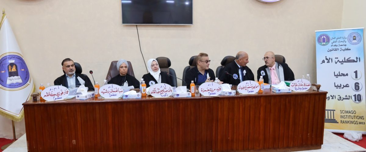 ناقشت كلية القانون في جامعة بغداد اطروحة دكتوراة بعنوان (سلطة الادارة في تنظيم موارد البلديات العامة باتباع اساليب التكنولوجيا الحديثة في العراق/ دراسة مقارنة) للطالب (وطبان نجم عبداللة محمد) بفرع القانون العام، يوم الثلاثاء الموافق 2025/6/24 على قاعة المؤتمرات في الكلية.