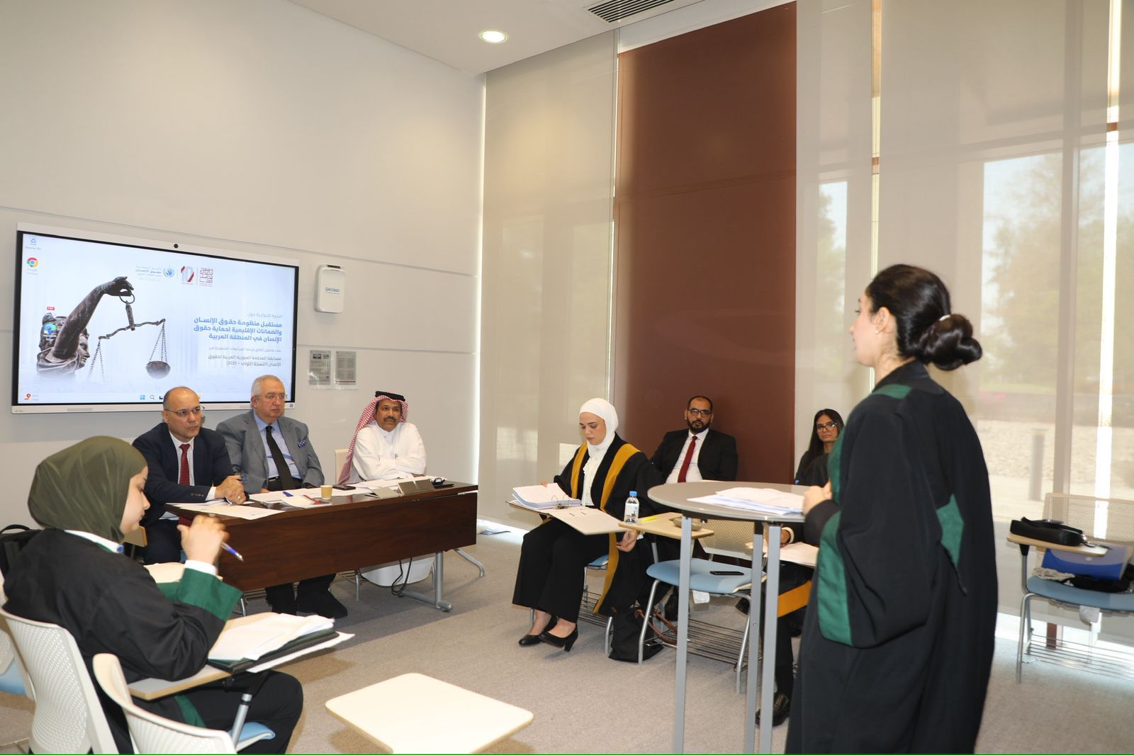 شارك فريق كلية القانون – جامعة بغداد في النسخة الأولى من مسابقة المحكمة العربية لحقوق الإنسان، التي نُظمت من قبل مركز التدريب والتطوير في جنوب غرب آسيا والمنطقة العربية التابع للأمم المتحدة، وبمشاركة أكثر من (٥٠) جامعة عربية في مرحلة المذكرات الخطية، حيث تأهل منها (١١) فريقاً إلى مرحلة المرافعات الشفهية التي أُقيمت في معهد الدوحة للدراسات العليا، وكان فريق كلية القانون من بين المتأهلين لهذه المرحلة.
