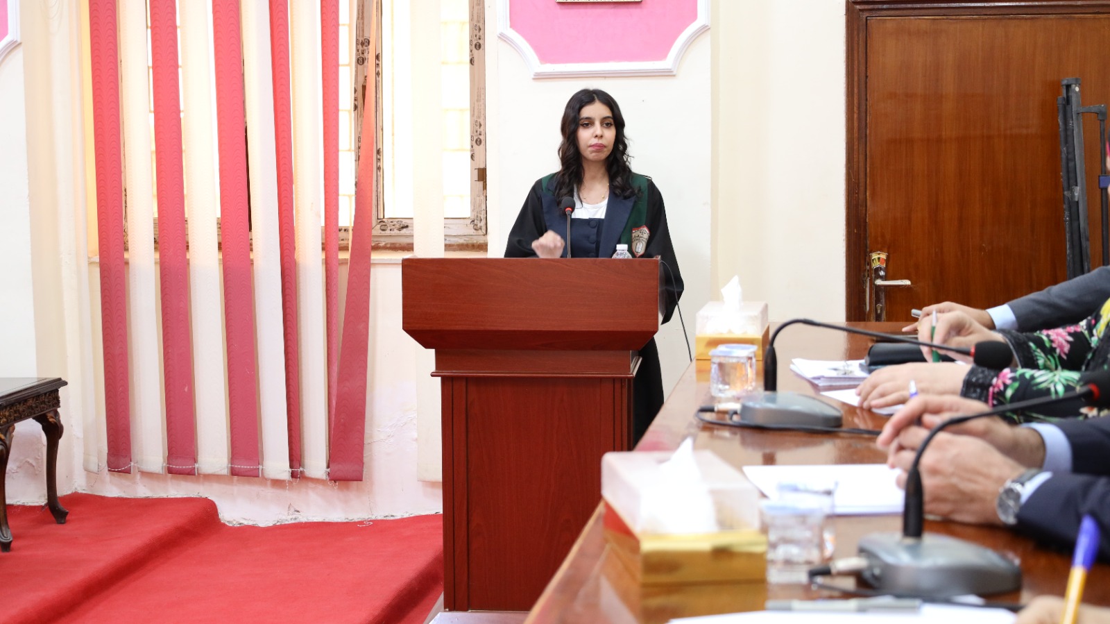 وتناولت المحاكمة هذا العام موضوع “الجنسية وتنازع القوانين”، حيث قدّم الطلبة مرافعاتهم القانونية أمام لجنة من الأساتذة المختصين، في محاكاة واقعية لإجراءات التقاضي، تهدف إلى تنمية مهاراتهم في التحليل القانوني وصياغة الدفوع والمرافعات.